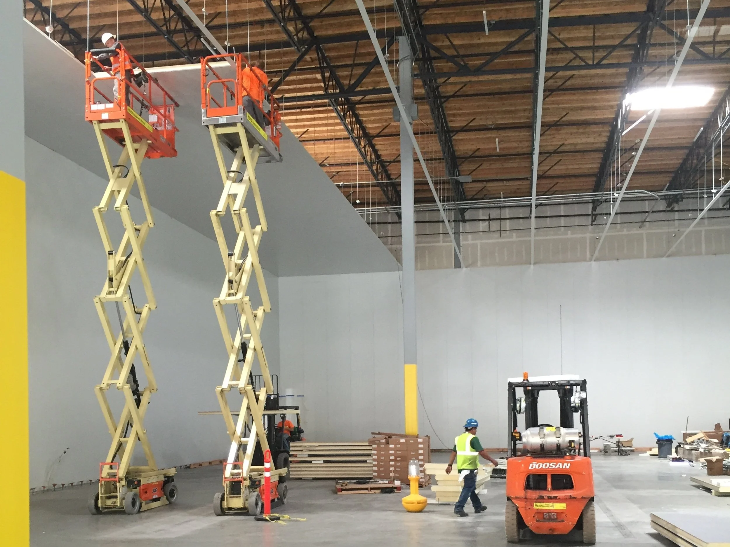 Fast Installation: Insulated metal panels are manufactured off-site in a controlled factory environment, and then transported to the construction site. Taking up less space at your facility during construction projects. Insulated metal panels are easier to modify than concrete allowing for faster installation and more design flexibility.